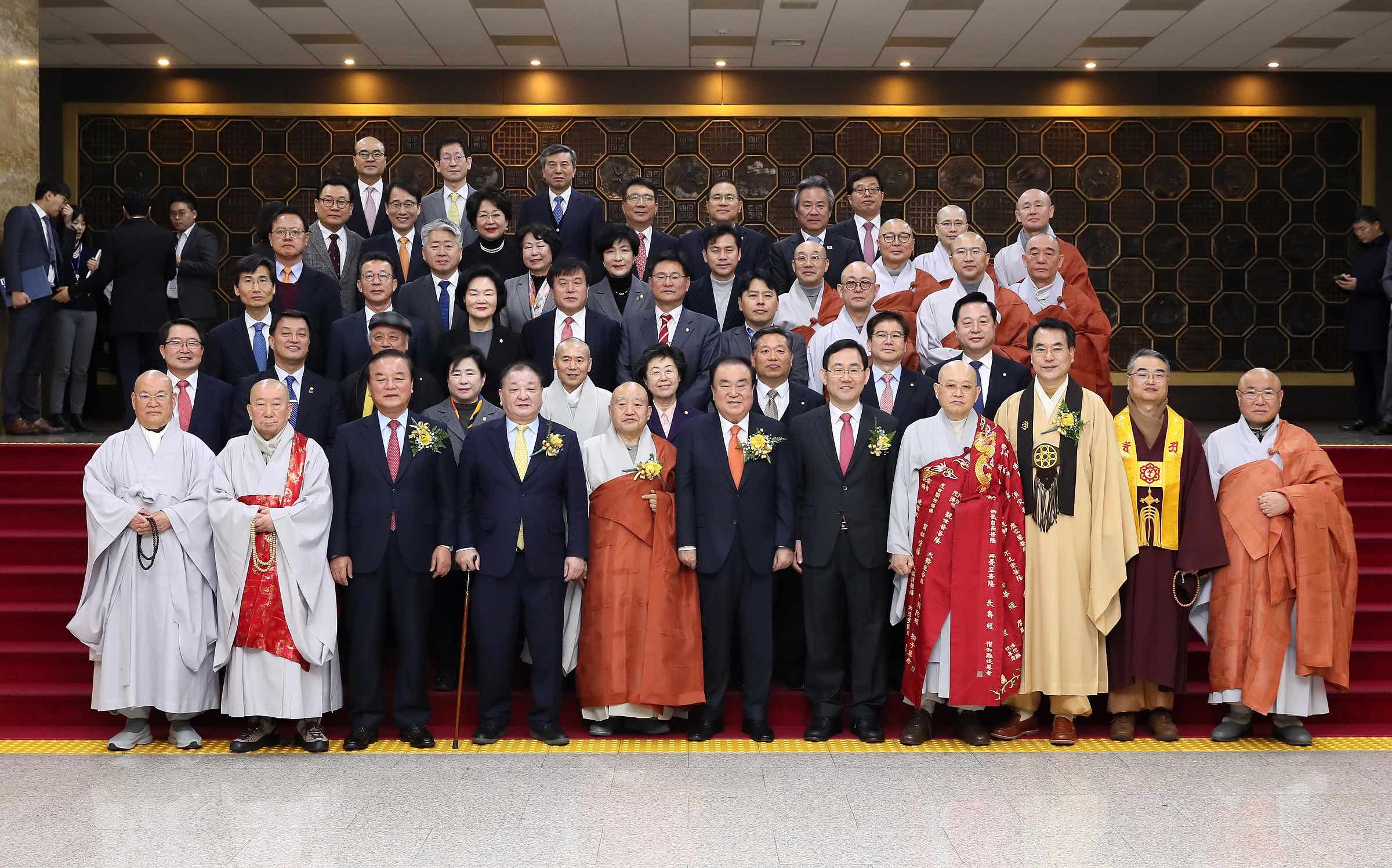 문희상 국회의장은 2월 21일(목) 국회 의원식당 별실에서 열린 국회 정각회 신년법회에 참석해 축하의 말을 전했다.