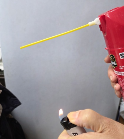 해충잡는 스프레이, 화기 불 옆에서 사용하면 화재 위험